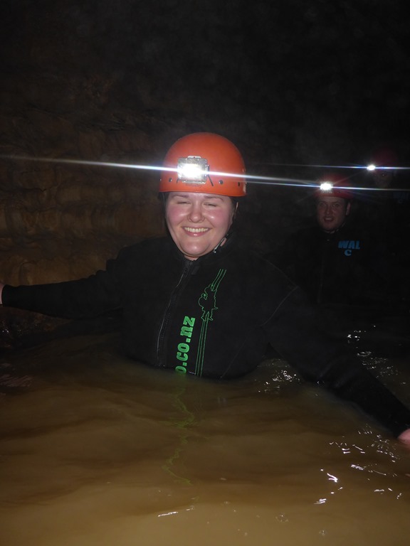 Die Höhle bietet von allem etwas: Man kann abrutschen, runterfallen, ertrinken, sich den Kopf anstoßen, sich verschiedene Gliedmaßen brechen oder aufschneiden, verirren, von Steinen erschlagen werden… Aber unser Guide passt gut auf uns auf und zum Entspannen gibt es zwischendrin Passagen in denen man in einem übergroßen Schwimmring einfach durch die dunkle Höhle treibt und die Millionen Glühwürmchen anschaut. Das sind so viele, das man zwischendrin nach einem kurzen Vortrag vom Guide ohne extra Licht zumindest Konturen gut erkennen kann.