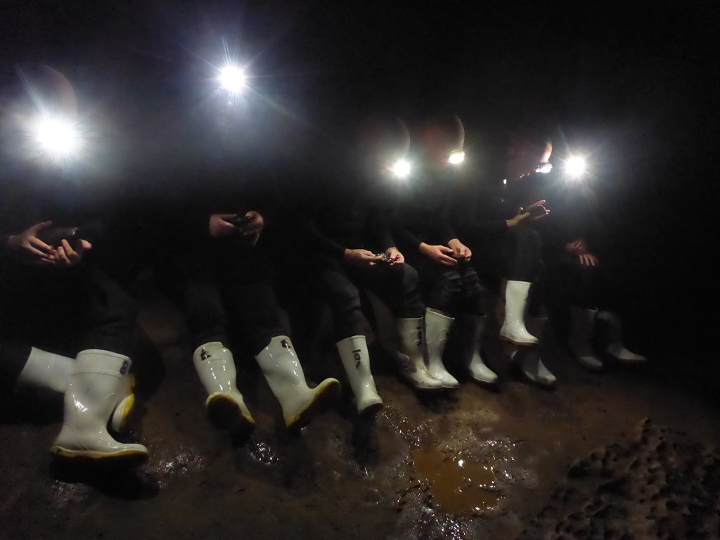 Dann ging es also runter, einen Schacht mit glitschiger Leiter entlang und dann erstmal in der dunklen Höhle warten, bis der Rest der Gruppe auch unten ist.